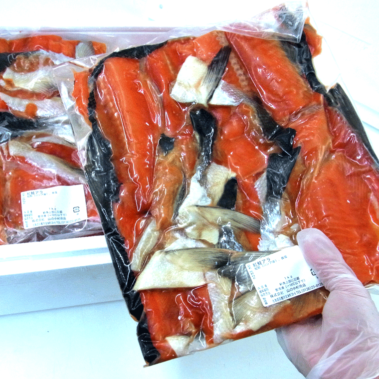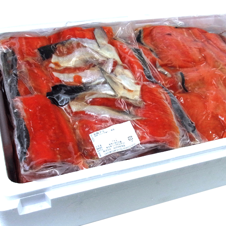 早いもの勝ち!訳あり 天然紅鮭(べにさけ)のアラ 1kg(キロ) ※ 数量限定 ベニサケ山漬けのアラ 冷たく、荒い、北海道の厳海にもまれた紅鮭は、 身の締りが違います! 脂のノリが良い大きな身。