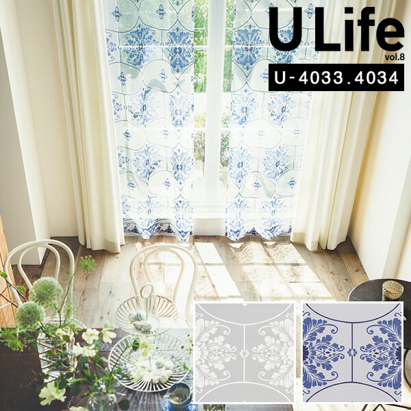 スミノエ U-Life U-4033・U-4034 オーダーサイズ (メーカー別送品)【オーダー品の為返品不可・5~7営業日で発送/ホワイト/ブルー/レースカーテン/ウォッシャブル/形状記憶/UV/透けにくい/幾何学/ヴィンテージ/省エネ/日本製】