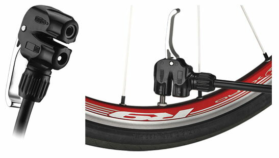 ●Dual ValveA custom floor pump head designed to easily press onto valves and lock into position with an aluminum lever.Rebuildable and compatible with Presta, Dunlop, and Schrader valves.