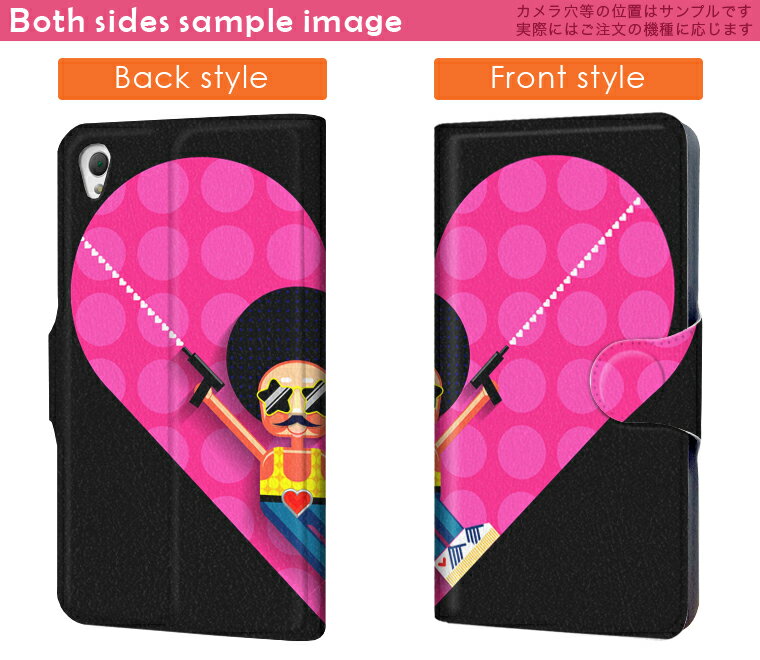SOL23 XPERIA Z1 エクスペリア au エーユー カバー 手帳型 全機種対応 あり カバー レザー ケース 手帳タイプ フリップ ダイアリー 二つ折り 革 アフロ ハート ユニーク 006517