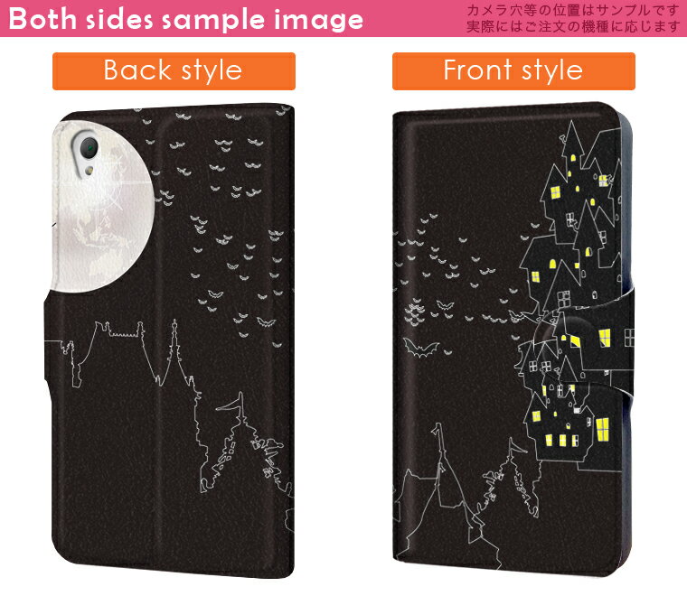 Xperia J1 Compact Xperia A2 エクスペリア simfree SIMフリー カバー 手帳型 全機種対応 あり カバー レザー ケース 手帳タイプ フリップ ダイアリー 二つ折り 革 ハロウィン 魔女 黒 ブラック クール 008443