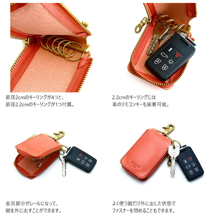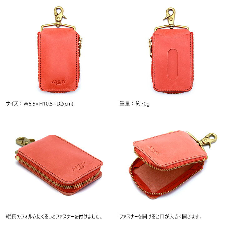 【送料無料】『ペロケ』(全5色)ブッテーロ/【キーケース 革 スマートキー パスケース ラウンドファスナー 薄い ベルトループ 】【AGILITY affa(アジリティアッファ)】(1632)